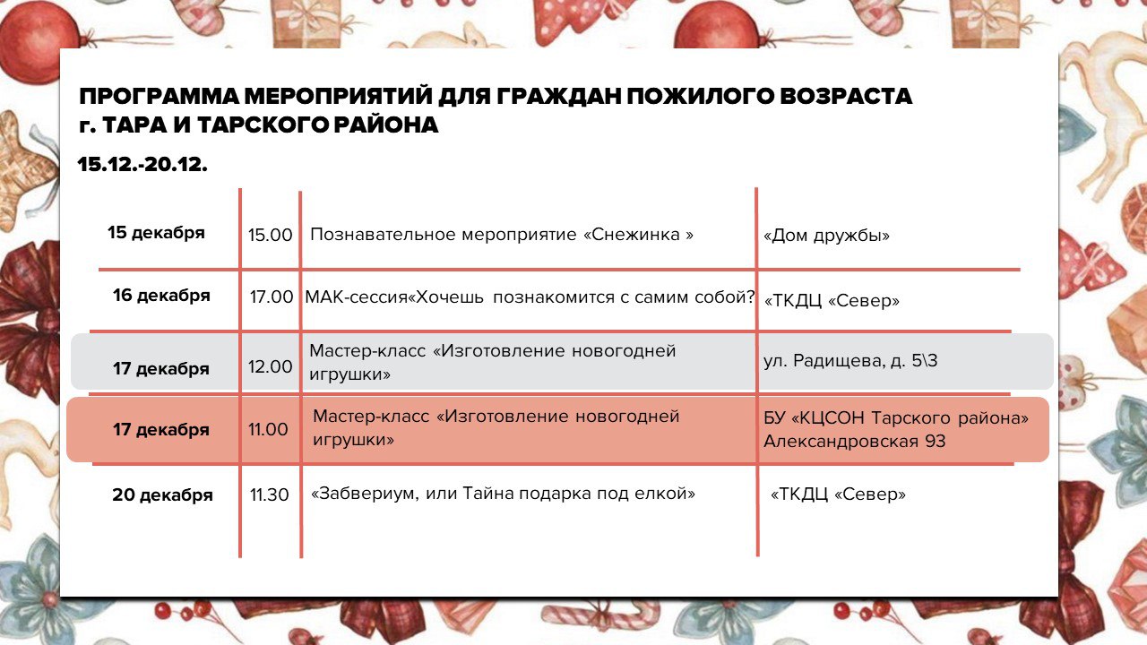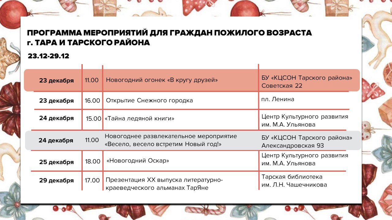 В тёплой, душевной атмосфере прошло мероприятие "Новогодний огонек в кругу друзей", организованное специалистами комплексного центра для граждан, проживающих в "Доме ветеранов". Программа праздника была наполнена яркими моментами. Интересные конкурсы, беспроигрышная лотерея, любимые песни от вокального ансамбля "Ярославна" – всё это подарило всем присутствующим отличное настроение. В завершении новогоднего мероприятия для гостей было организовано чаепитие с вкусным брусничным пирогом и сладостями.